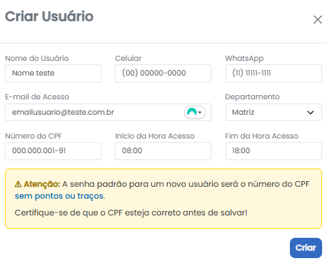 Lembrando que a "senha" padrão de primeiro acesso deste novo usuário é o seu "número de CPF" sem pontuação ou traços.
